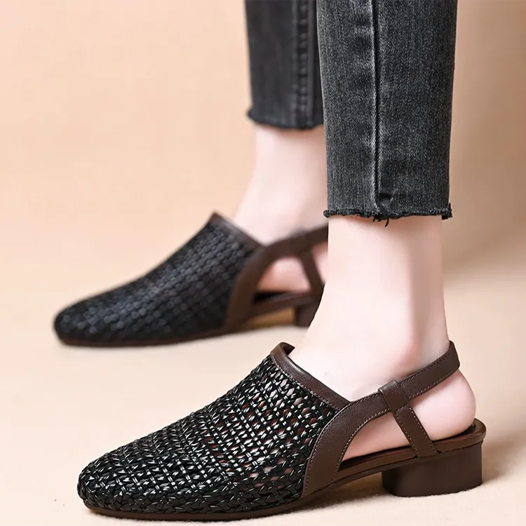 صندل نسائي بكعب سميك منسوج يدويًا، يمنحك زيادة ارتفاع 3 سم، تصميم مريح وثابت، خامات عالية الجودة، مناسب للإطلالات اليومية والمناسبات.