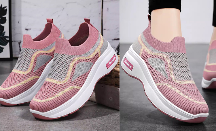 ✅حذاء نسائي داعم للقوس القدمي وقابل للتعديل، مصنوع من نسيج طائر متنفس ومريح