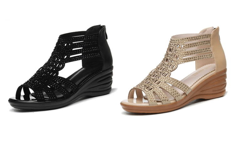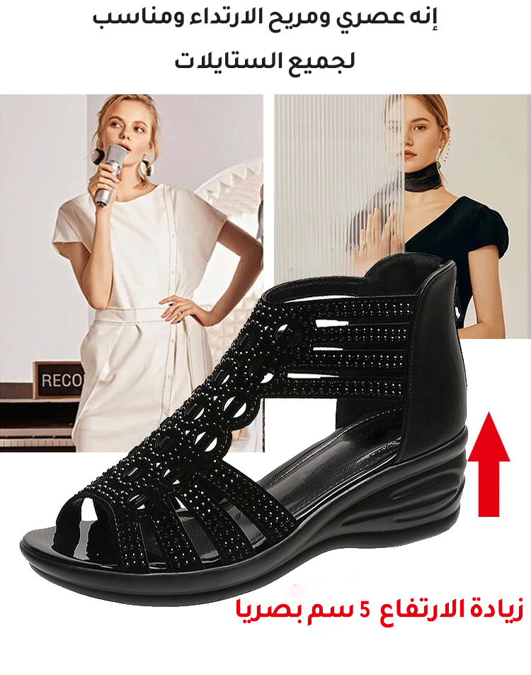 Healthy-foot صندل نسائي مفتوح من الأمام بكعب عالي، مزين بأحجار الراين، ارتفاع الكعب 5 سم، يناسب شكل القدم ويجعلها تبدو أنحف، متوفر بمقاسات كبيرة