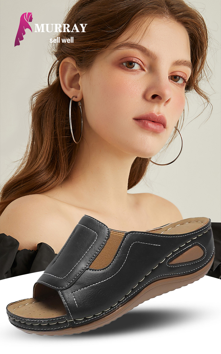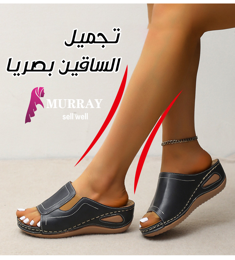 Healthy-foot صندل جلدي نسائي مفتوح المقدمة بكعب منحدر، نعل ناعم، ارتفاع الكعب 5.5 سم، سهل الارتداء والخلع، مثالي للاستخدام اليومي