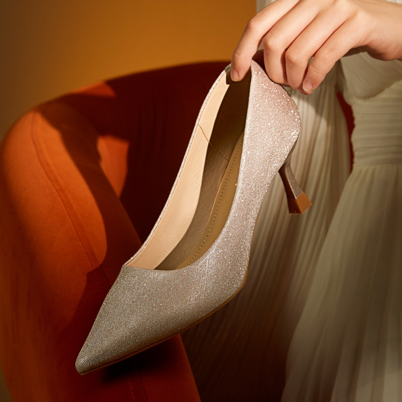 Healthy-foot حذاء كعب عالٍ للسيدات للمناسبات، مزيّن بترتر لامع، كعب بارتفاع 6 سم، أنيق وملفت للأنظار