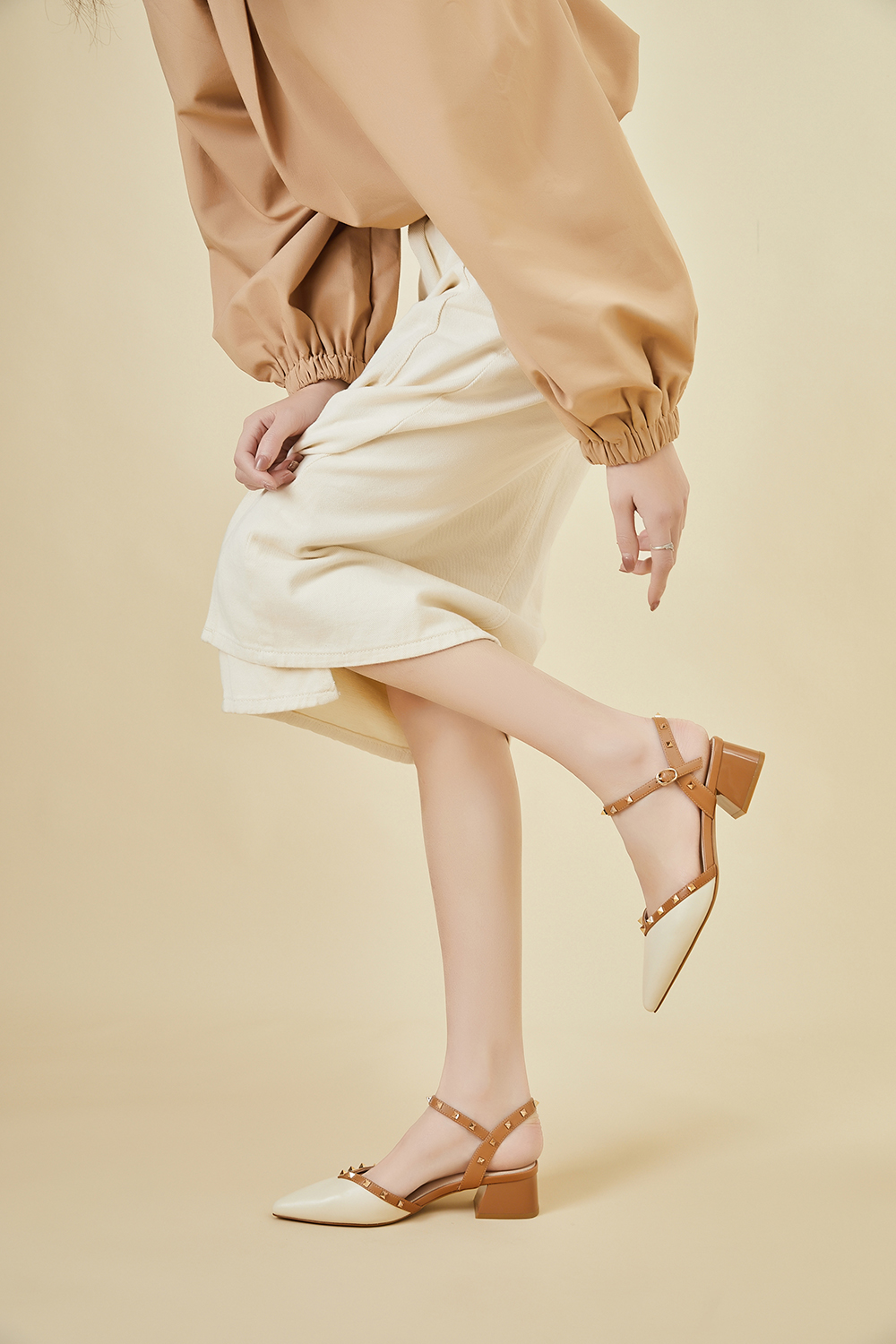 Healthy-foot حذاء بكعب عالٍ ذهبي أنيق بتصميم فرنسي وأحزمة مستقيمة