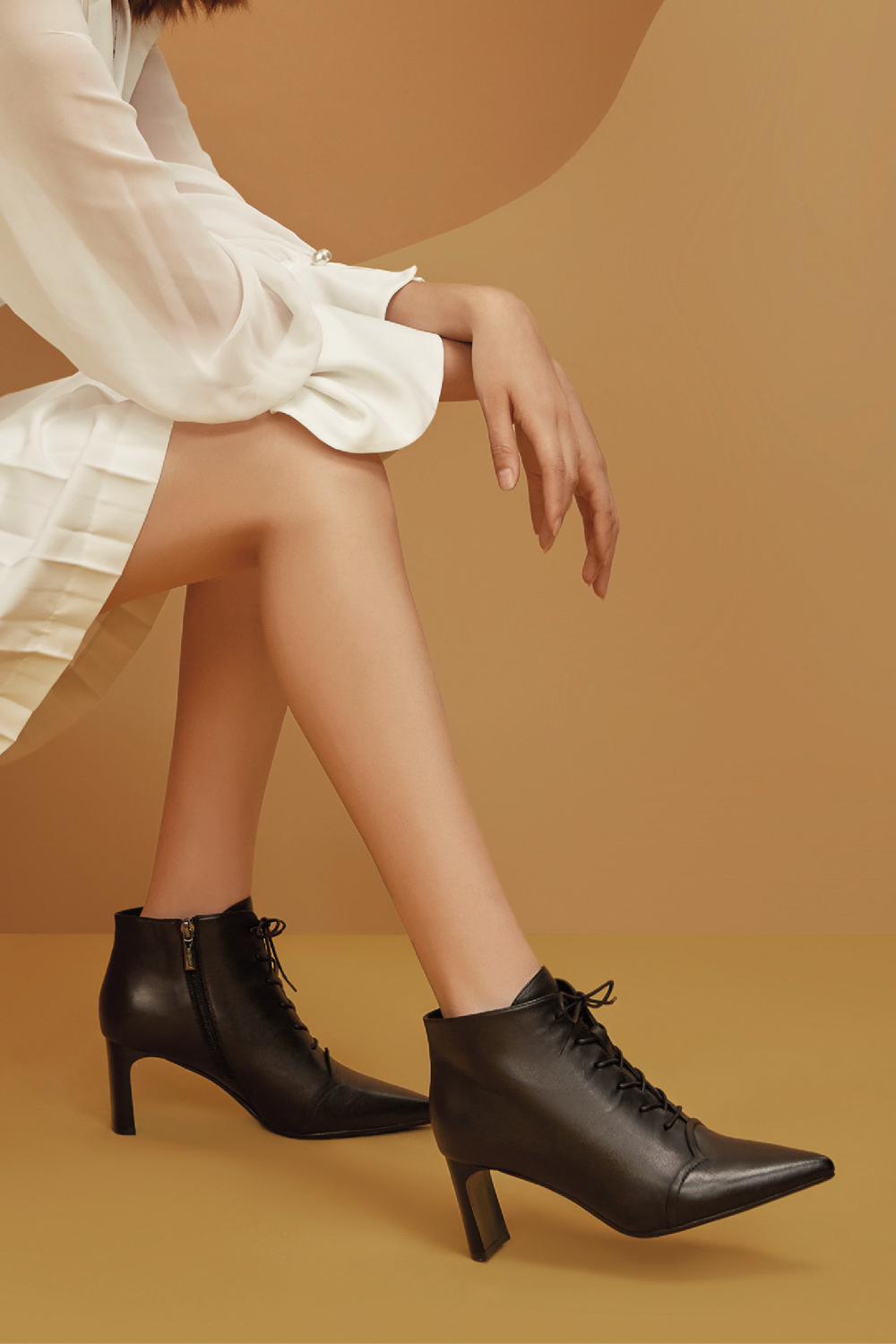 Healthy-foot حذاء راقي جلدي بكعب منخفض للنساء
