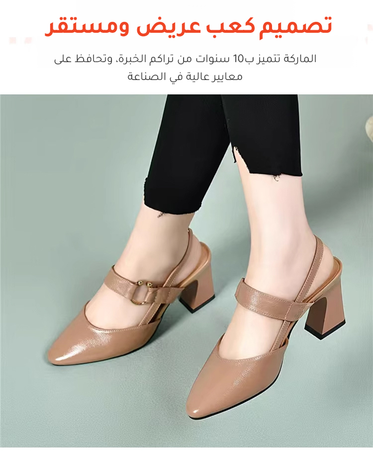 Healthy-foot حذاء نسائي فرنسي بكعب عالٍ من الجلد الناعم، بكعب متوسط ٥ سم، أنيق ومريح، سهل الارتداء والخلع، يُبرز جمال ساقيكِ. مثالي للتنقل أو العمل