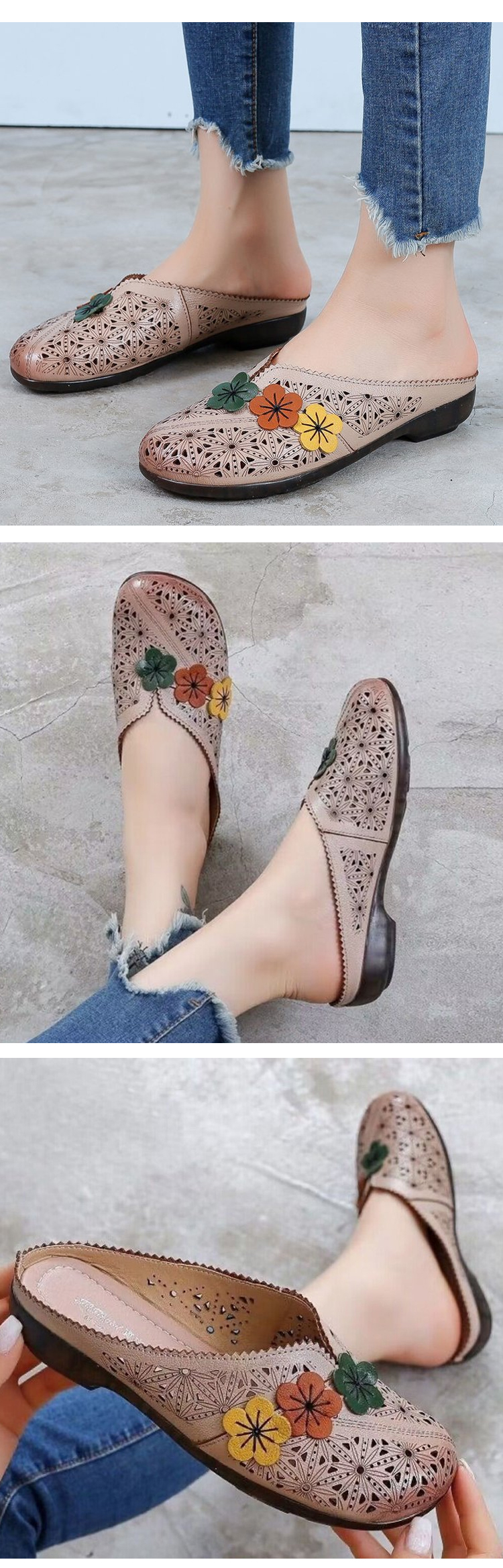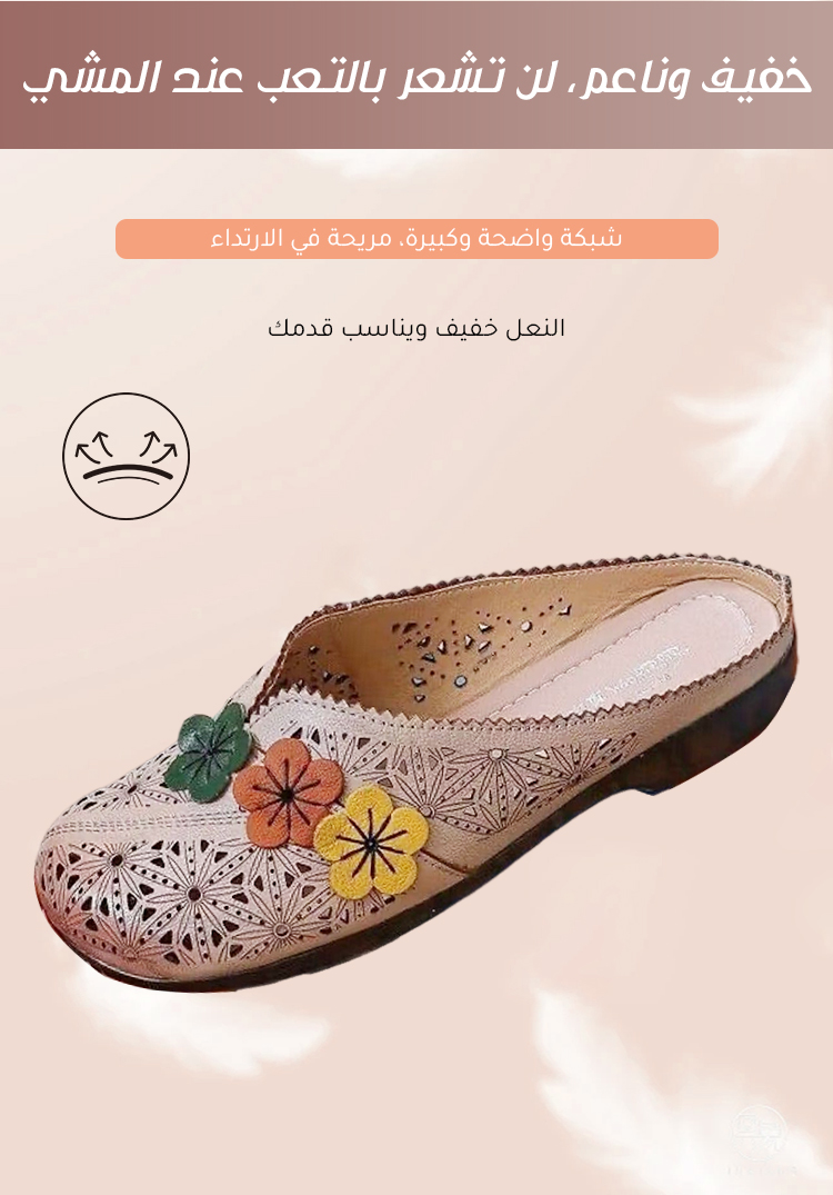نعال موليير مزخرف بتصميم زهور مجوف، مضاد للانزلاق وجيد التهوية، مثالي للنساء كبيرات السن ذوات القدمين العريضة |