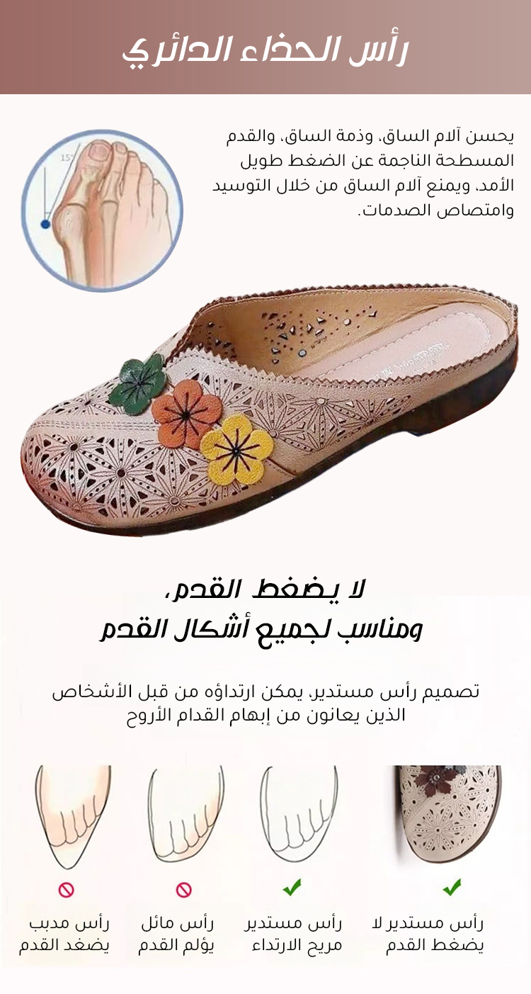 Healthy-foot صندل نسائي بمقدمة مستديرة ومكشوف للكعب، بتصميم عتيق مفرغ، كعب منخفض 3 سم يضمن المشي بثبات، يناسب جميع الفئات، قطعة يومية متعددة الاستخدامات