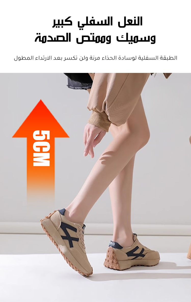 Healthy-foot حذاء رياضي نسائي بكعب ٥ سم، يُطيل الساقين بشكل خفيف، فيبدو أنحف وأطول. متعدد الاستخدامات ومريح، مناسب للرياضات الخارجية أو للارتداء اليومي
