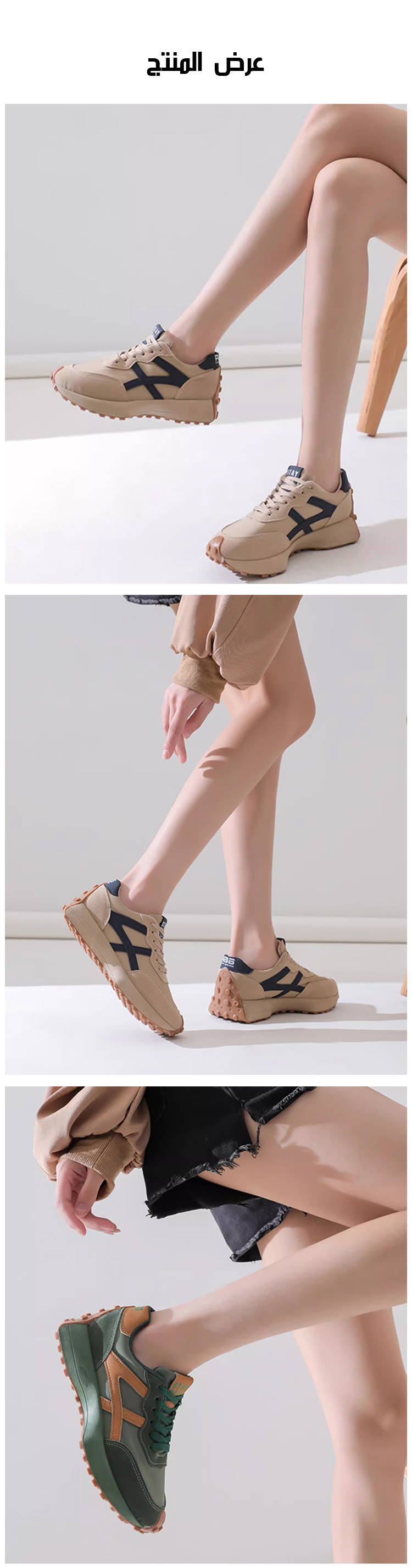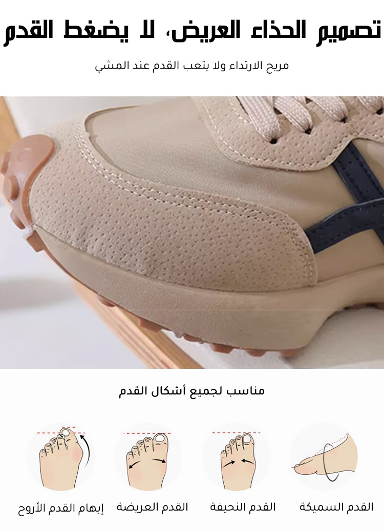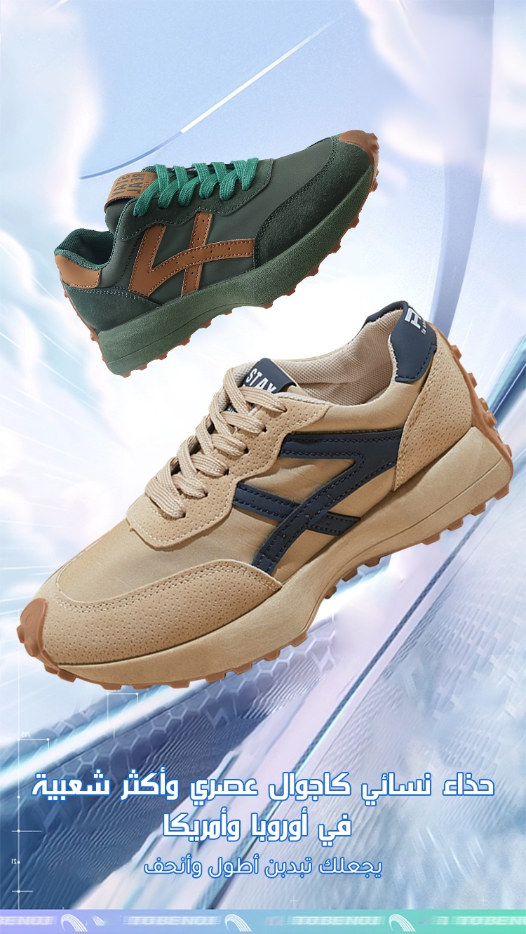 المادة العلوية: جلد المدبوغ المخمل + قماش شبكي قابل للتنفس، يجمع بين المظهر الكلاسيكي والتهوية النعل: نعل مطاطي مقاوم للتآكل + نقوش مانعة للانزلاق، مناسب للأسطح الملساء تصميم النعل: تصميم موسع، مناسب للقدم العريضة للمرأة في الشرق الأوسط |