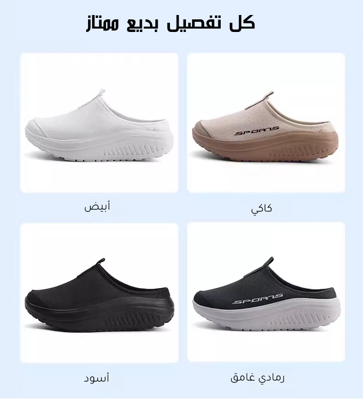 توفر هذه النعال الشبكية غير الرسمية حماية قدميك بفضل قدرتها الممتازة على التنفس. يعتمد على تصميم شبكي كامل قابل للتنفس، مثل "جناح القدم" القابل للتنفس. حتى في بيئة درجة الحرارة العالية في المملكة العربية السعودية، فإنه يمكن تفريغ الحرارة والرطوبة بسرعة. فهو مناسب جدًا للمرضى الذين يعانون من مشاكل في القدم وكبار السن ذوي الحركة المحدودة. إنه متوفر بثلاثة ألوان: الأبيض والأسود والبيج، ويمكن تنسيقه مع أي ملابس.