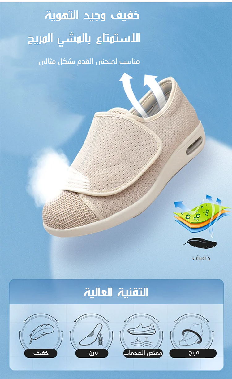 حذاء Healthy-foot الصديق للقدم العريضة مع شريط سحري، متوافق مع الملابس المنزلية والبناطيل الكاجوال والجوارب العلاجية. من المنزل إلى العيادة، حذاء واحد يغطي كل المواقف، ولا تحتاج لتغيير الأحذية بشكل متكرر مما يوفر عليك عناء التفكير. |