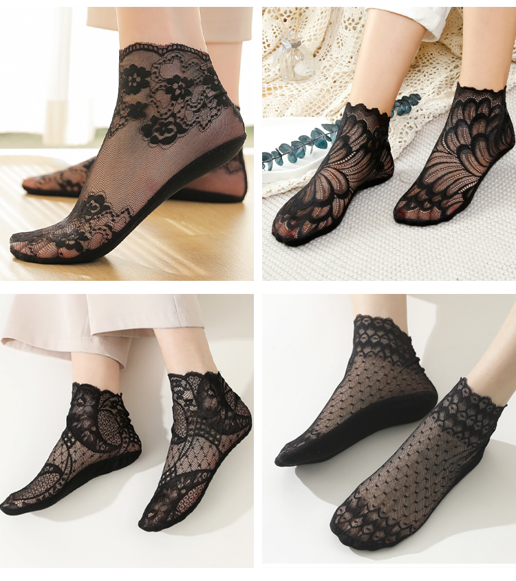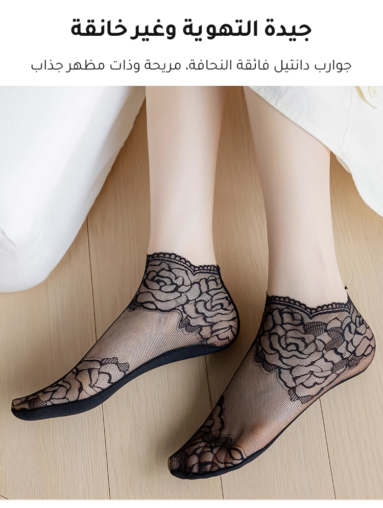 Healthy-foot جوارب الحماية من الشمس المطبوعة بالدانتيل للنساء قابلة للتنفس وناعمة ومصنوعة من دانتيل متين لن ينكسر، مما يعزز المظهر المثير والأنيق