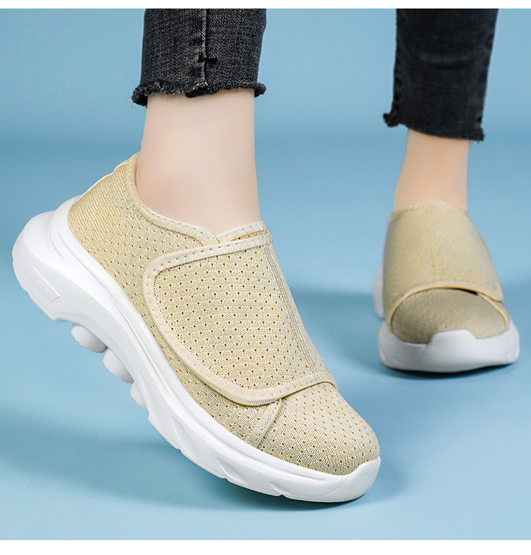 يصنع من قماش شبكي عالي الكثافة، مريح في الصيف ويسمح بالتهوية دون الشعور بالاختناق، مع مراعاة التهوية والدعم. تصميم الشريط اللاصق الموسع يمكنه التكيف بمرونة مع محيط القدم وارتفاع الكاحل، ويحتضن بشكل مثالي القدم العريضة، والقدم السمينة، والقدم المنتفخة أثناء الحمل، وقدم ما بعد الجراحة المتورمة. التصميم سهل الارتداء مناسب للأشخاص المسنين ذوي الحركة المحدودة والعاملين المتعجلين. مقدمة الحذاء فضفاضة لا تضغط على الأصابع، والجسم متناغم مع قوس القدم، يوفر مساحة كافية للحركة، ويودع عدم الراحة الناتجة عن الاحتكاك والضغط. |