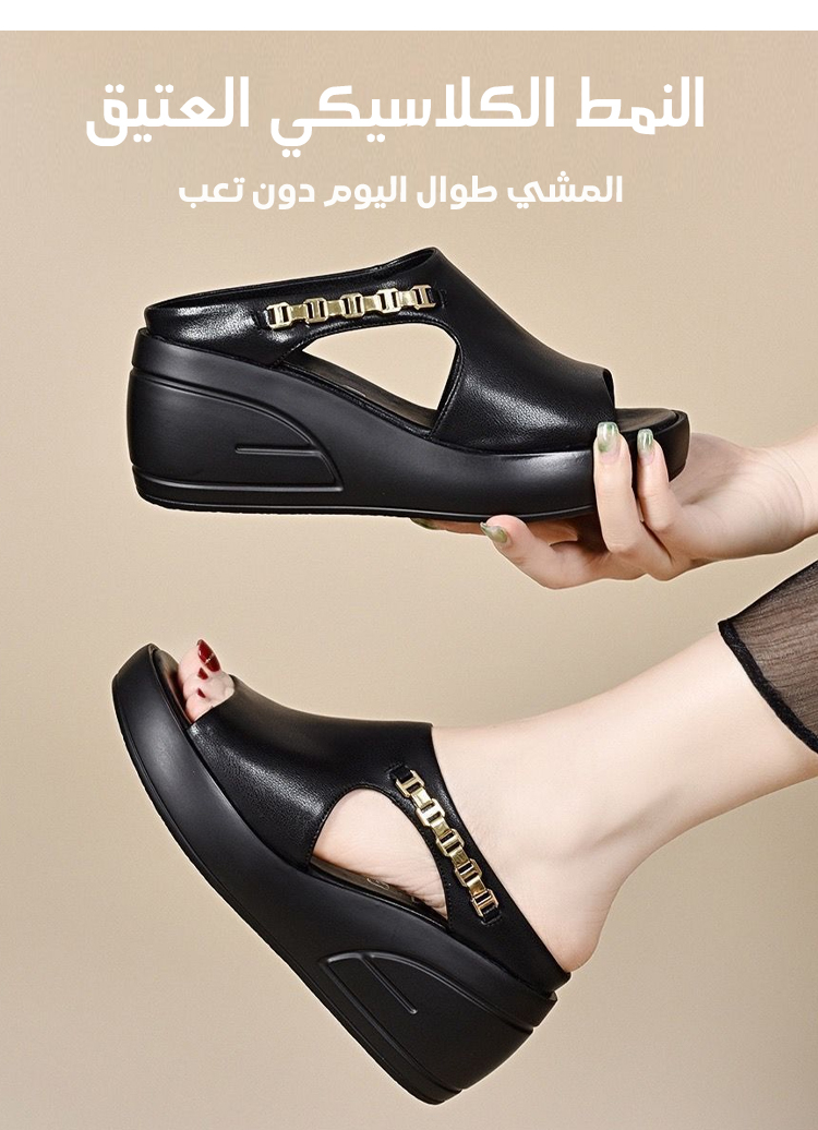 Healthy-foot حذاء نسائي فرنسي بكعب عالٍ من الجلد الناعم، بكعب متوسط ٥ سم، أنيق ومريح، سهل الارتداء والخلع، يُبرز جمال ساقيكِ. مثالي للتنقل أو العمل