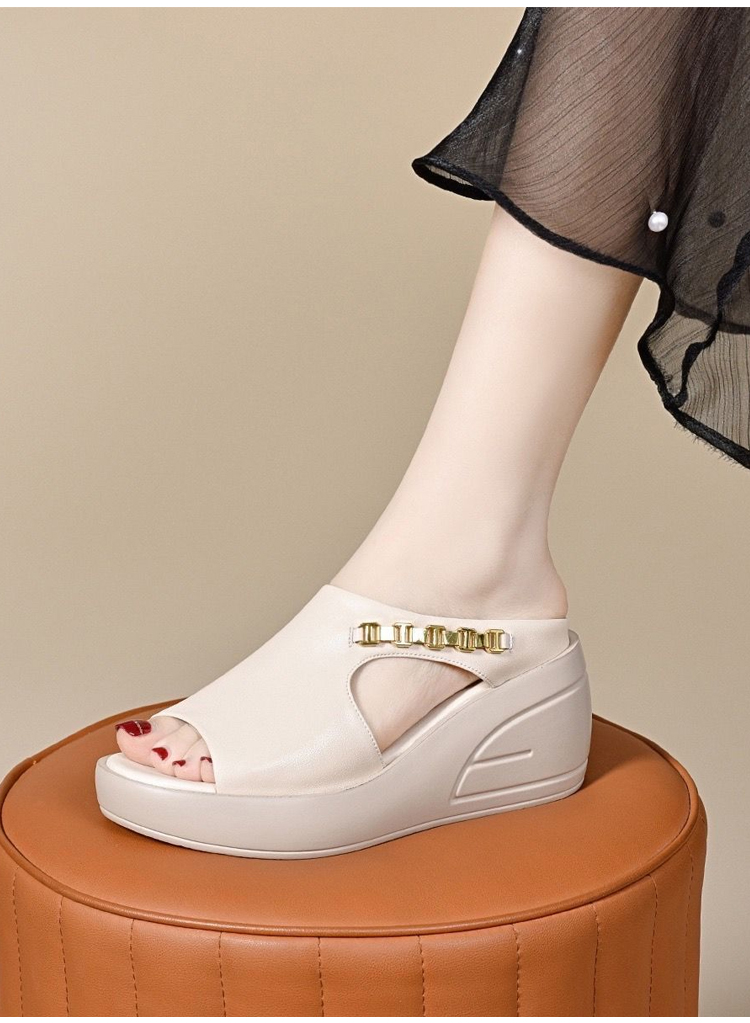 التصميم بسلسلة معدنية يضفي لمسة عصرية، وهو من أكثر العناصر رواجًا في الموسم الحالي، ويتناغم بشكل مثالي مع البساطة والهدوء في جسم الحذاء، مما يجعله يبدو أنيقًا وعصريًا.