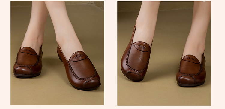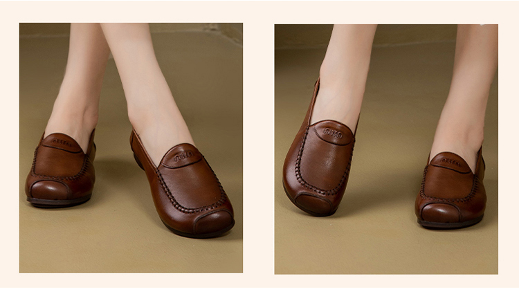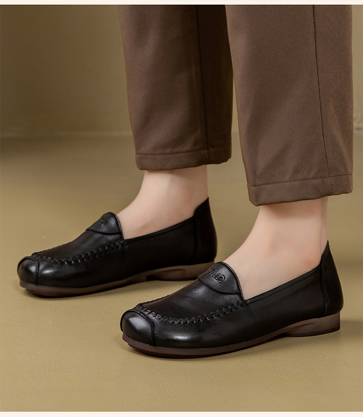 الأحذية الإيطالية اليدوية العتيقة ذات الرأس المستدير الموسعة | حذاء أمهات مانع للانزلاق بكعب منخفض 2 سم للتنقل
