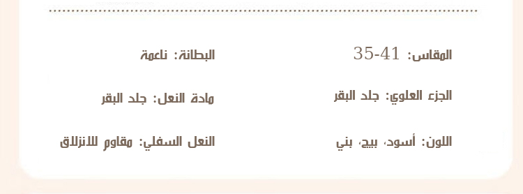 ✦ كعب بارتفاع 2 سم مع قاعدة مطاطية مسننة مضادة للانزلاق، تضمن المشي بأمان على مختلف الأسطح دون قلق من السقوط أو التواء القدم