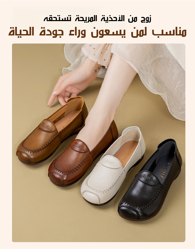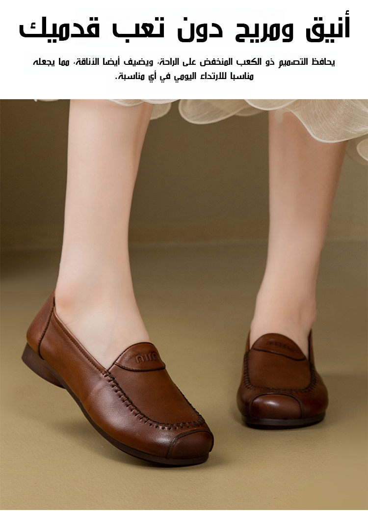 Healthy-foot حذاء راقي جلدي بكعب منخفض للنساء