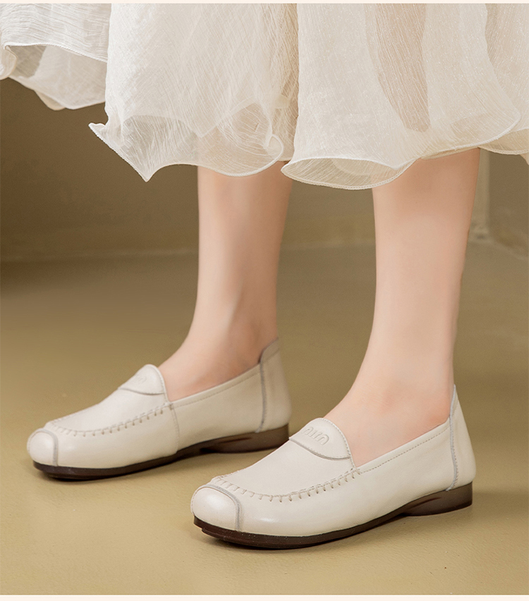أحذية نسائية مسطحة بفتحة دائرية واسعة - أحذية عمل كلاسيكية برقبة منخفضة