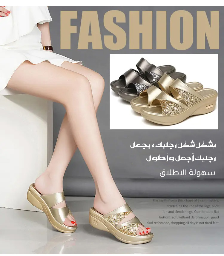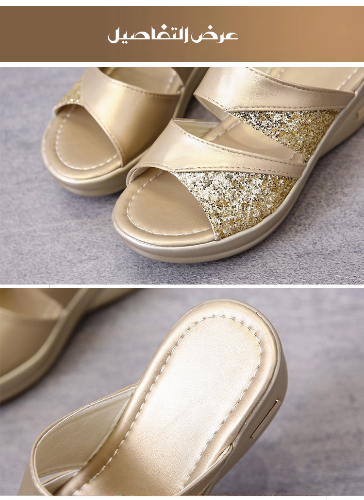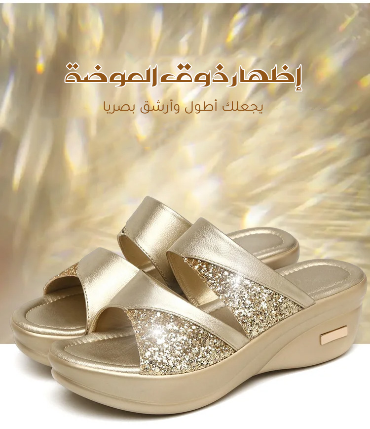 Healthy-foot صندل جديد للسيدات مع كعب مرتفع 5 سم مزين بالترتر، يعزز خط الساق ويجعلها تبدو أنحف، ونعل مريح للغاية مناسب للخروج