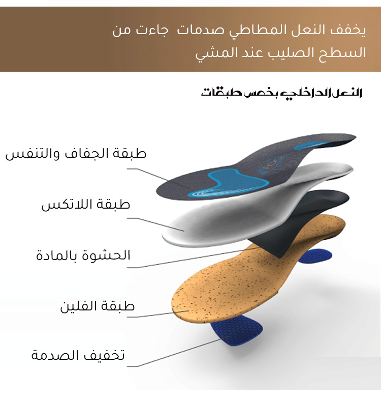 ✦ كعب منحدر بارتفاع 5 سم مع طبقة تخميد مموجة، يضمن الارتفاع والثبات في كل خطوة