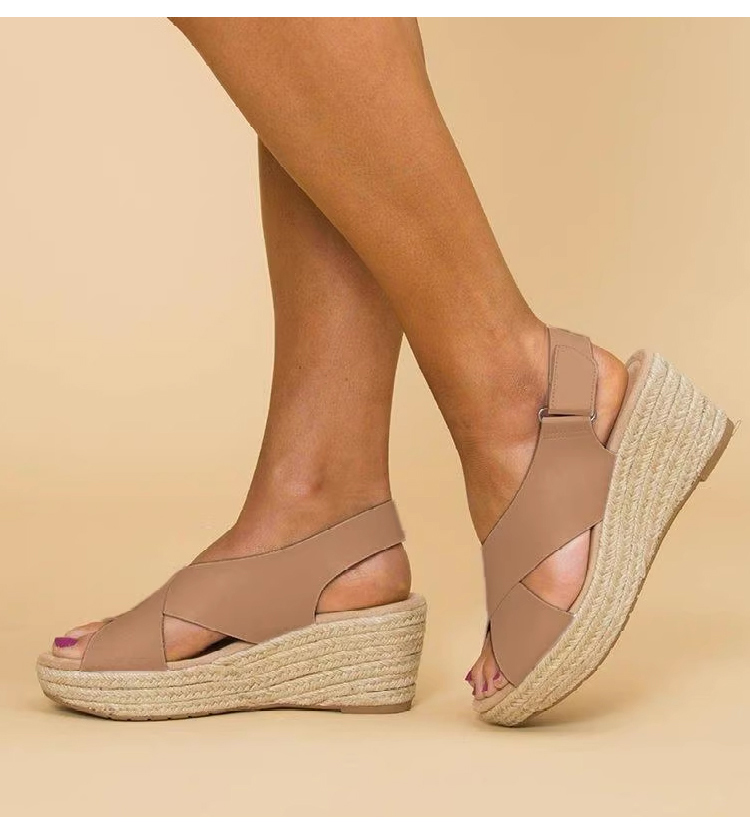 Healthy-foot صندل راقي إيطالي مع كعب ويدج من الخوص المجدول بارتفاع 6 سم للنساء