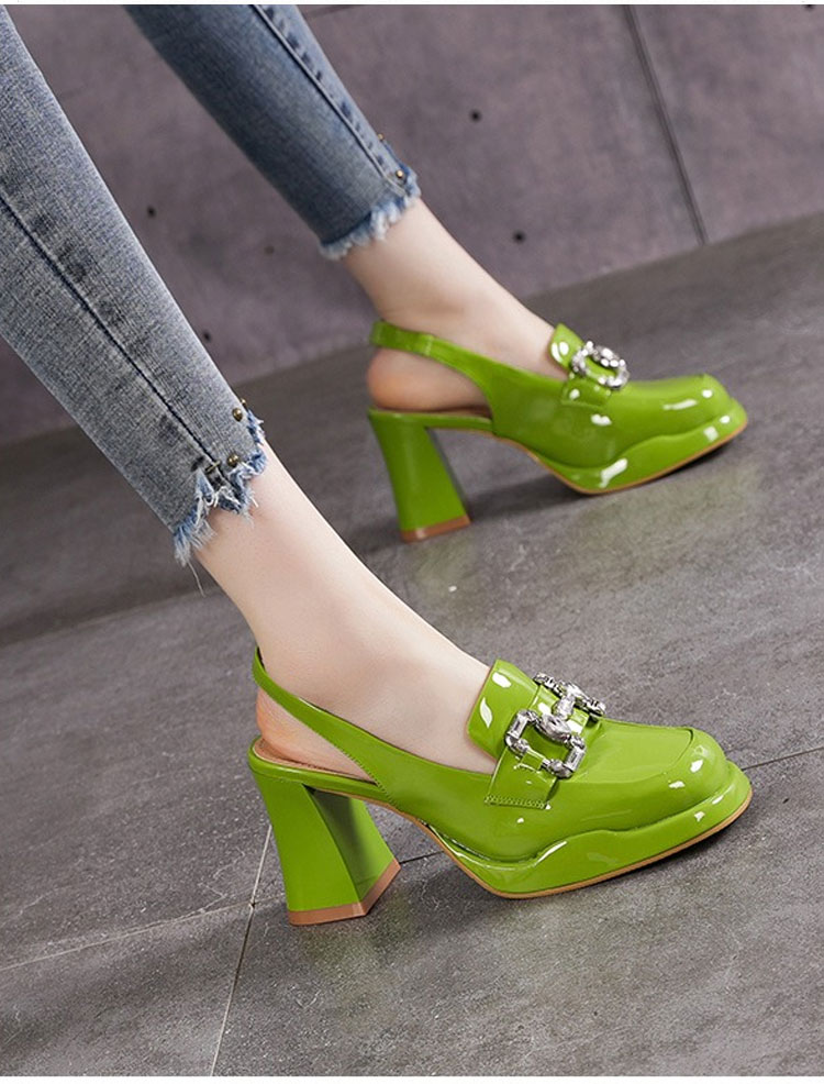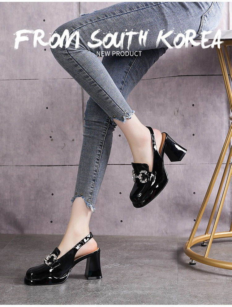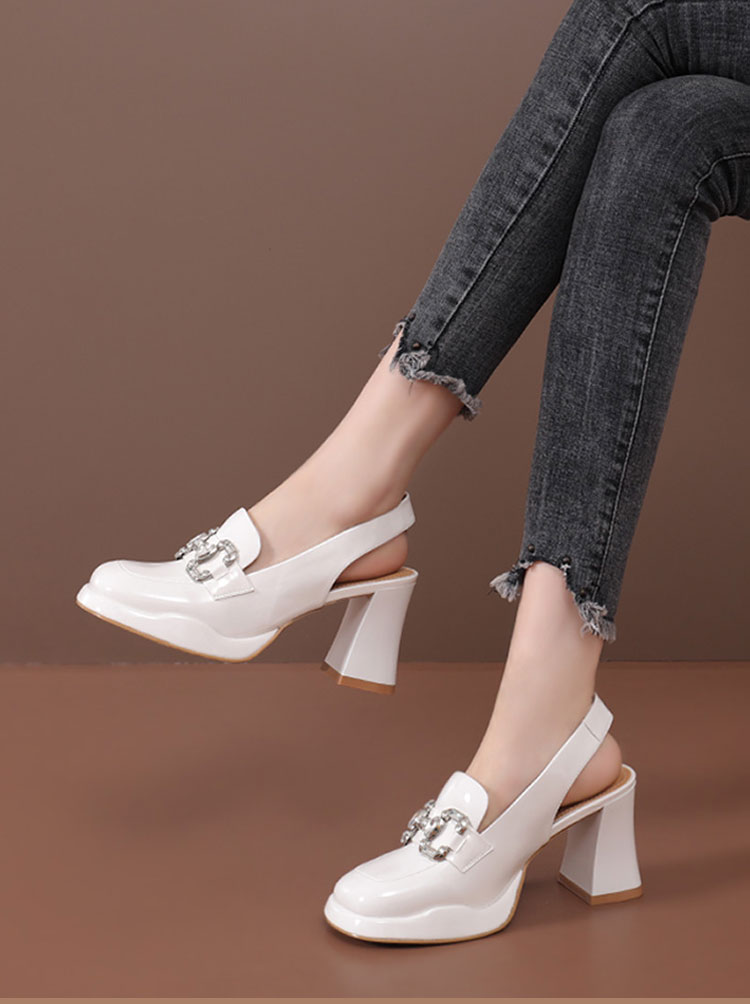 Healthy-foot صندل عصري نسائي فرنسي عالي الكعب ومرصع بحجر الراين