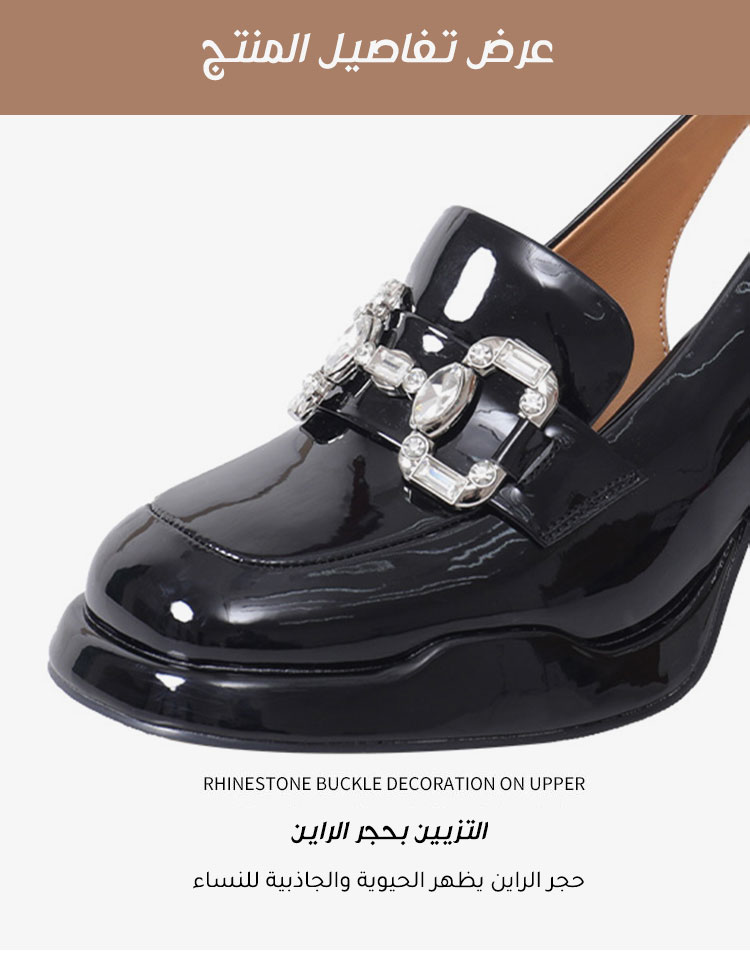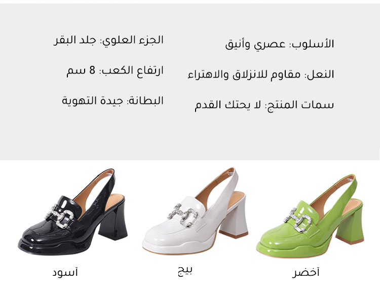 هذا الحذاء النسائي الفرنسي العصري يتميز بـ "جودة المواد، وتصميم جذاب، وأسلوب متعدد الاستخدامات" كميزة أساسية. مزيج الجلد الطبيعي والمطاط يضمن الأناقة والعملية، كعب سميك بارتفاع 8 سم وإبزيم مزخرف بالماس يجمع بين الكاريزما والتفاصيل الدقيقة. إنه اختيار مخلص للأناقة الفرنسية والموضة العصرية في عالم أحذية السيدات.