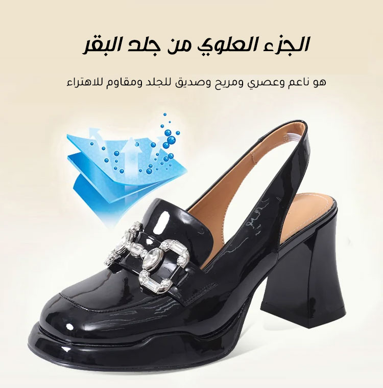 Healthy-foot حذاء نسائي فرنسي بكعب عالٍ من الجلد الناعم، بكعب متوسط ٥ سم، أنيق ومريح، سهل الارتداء والخلع، يُبرز جمال ساقيكِ. مثالي للتنقل أو العمل