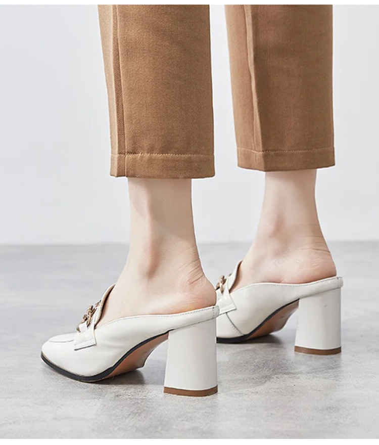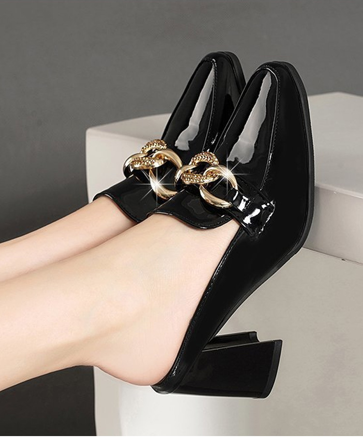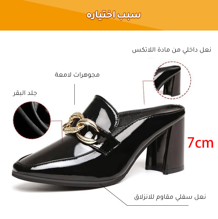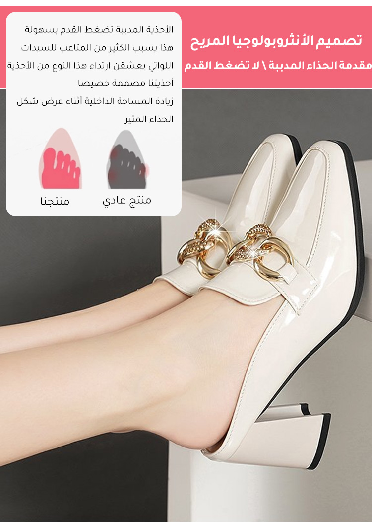 Healthy-foot أحذية جلدية لامعة للسيدات بمقاسات كبيرة، كعب مربع بارتفاع 7 سم، مزينة بإبزيم معدني، مناسبة للارتداء اليومي والمكتبي