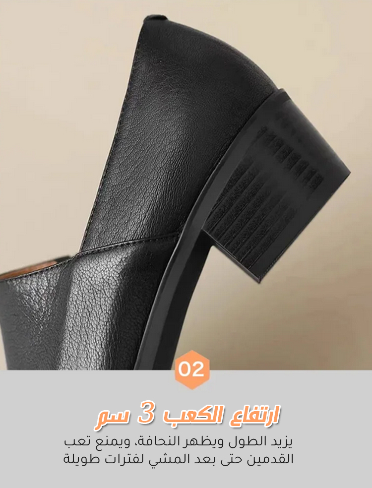 Healthy-foot حذاء نسائي فرنسي بكعب عالٍ من الجلد الناعم، بكعب متوسط ٥ سم، أنيق ومريح، سهل الارتداء والخلع، يُبرز جمال ساقيكِ. مثالي للتنقل أو العمل