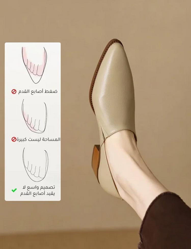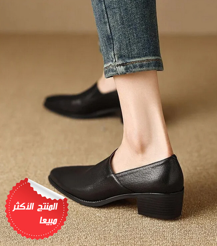Healthy-foot حذاء راقي جلدي بكعب منخفض للنساء