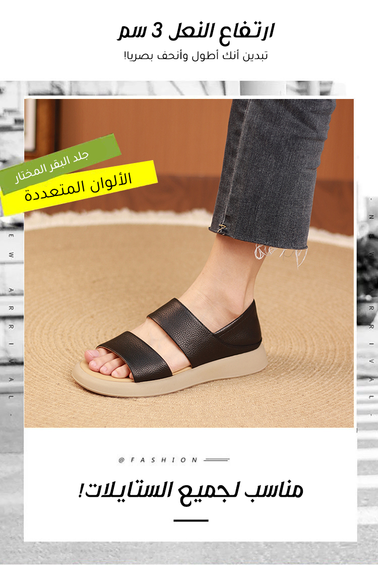 هذا الحذاء النسائي العصري المصنوع من الجلد الطبيعي، مصمم بلمسة جلدية أصيلة ودعم قوس القدم لتصحيح المشي، مع كعب بارتفاع 4 سم وخيارات متعددة من الألوان، يصبح "محرك مزدوج للراحة والموضة" للملابس الصيفية.