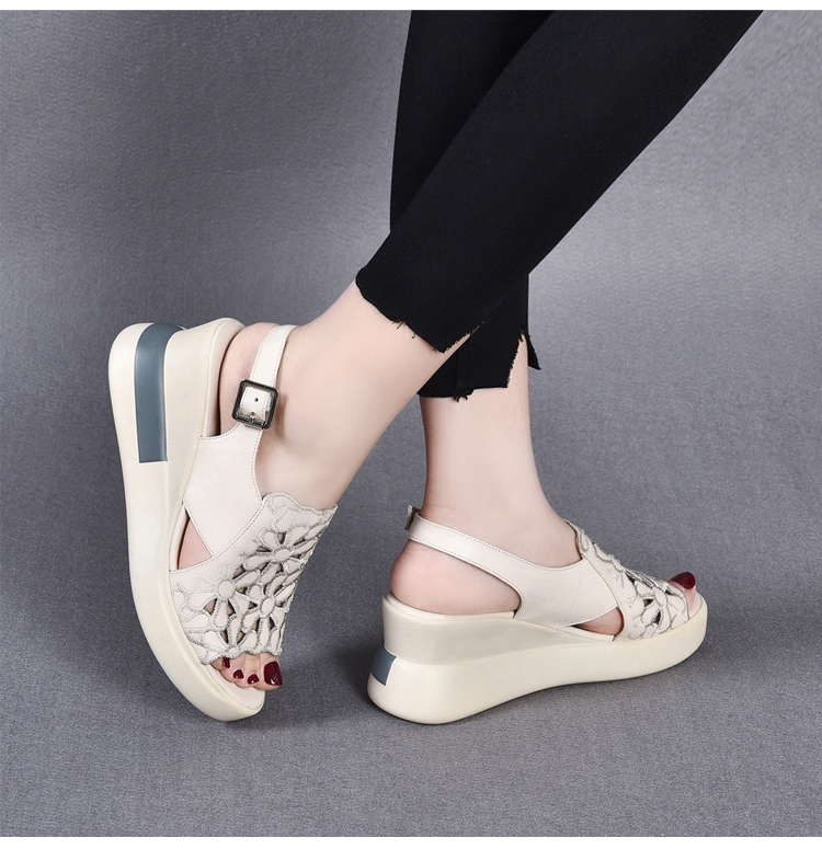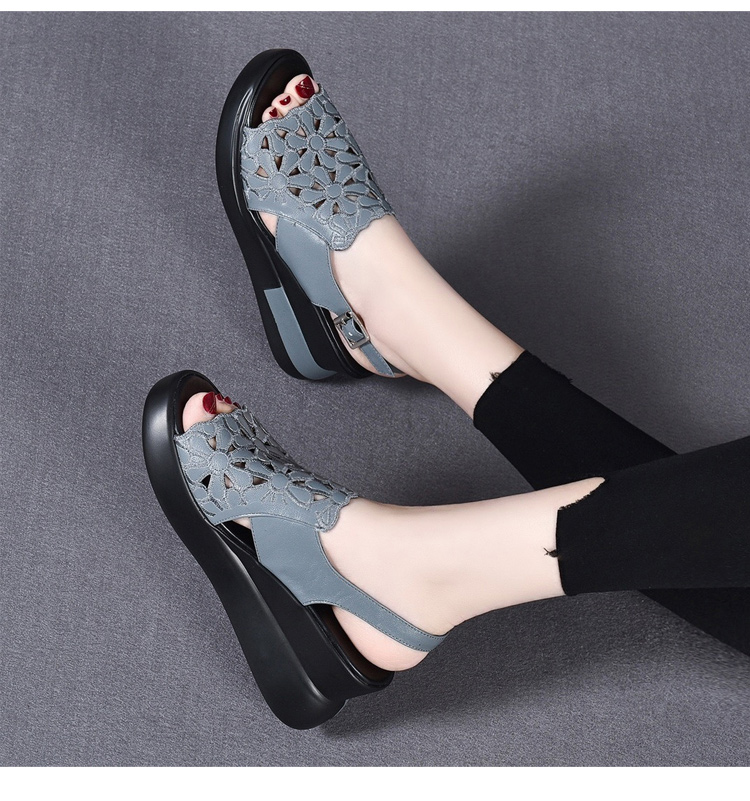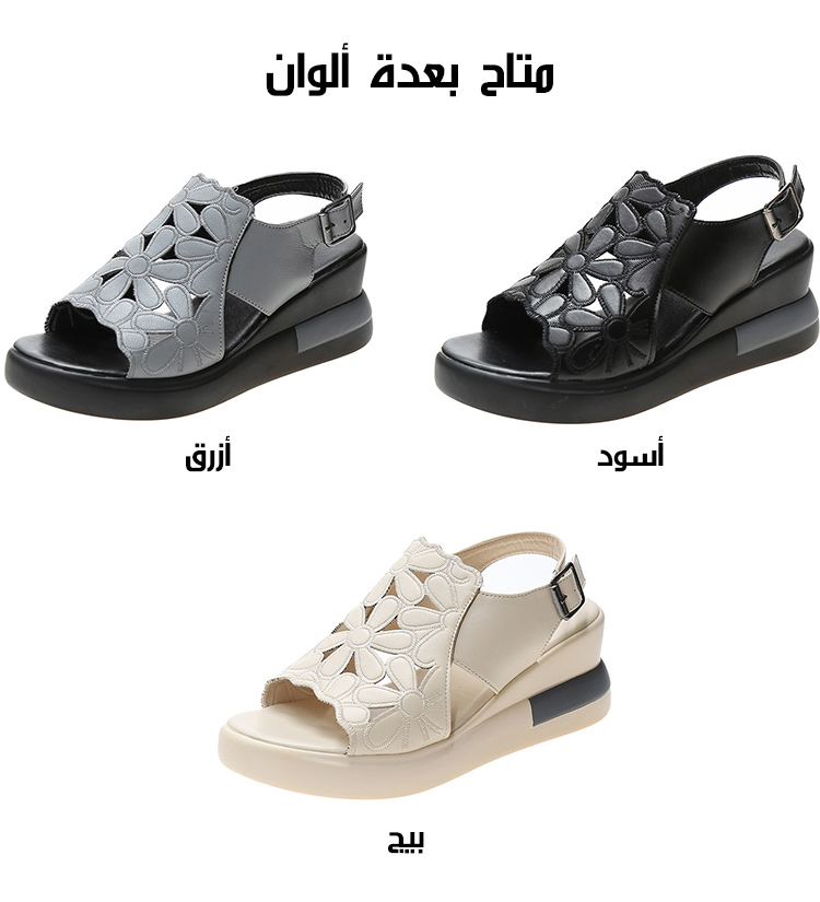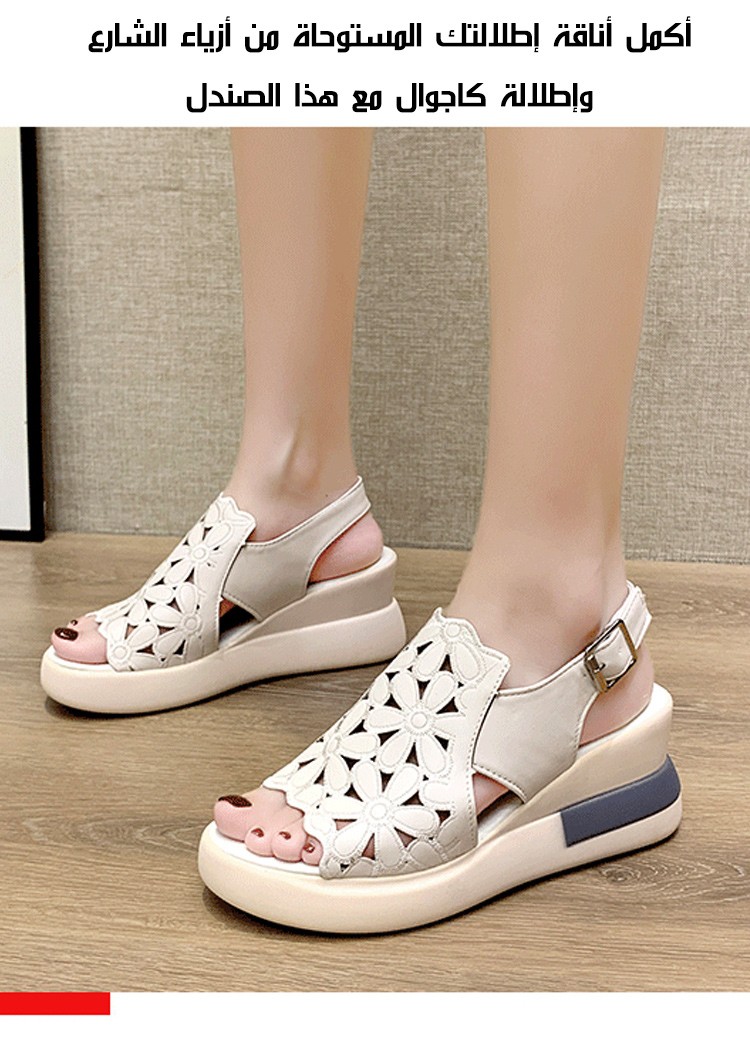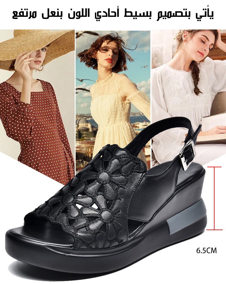 Healthy-foot صندل نسائي مفتوح من الأمام بكعب مائل، مع تصميم مفرغ على شكل زهور في الجزء العلوي، أنيق وعصري، ارتفاع الكعب 6.5 سم، مناسب بشكل خاص للاستخدام اليومي أو المواعدة