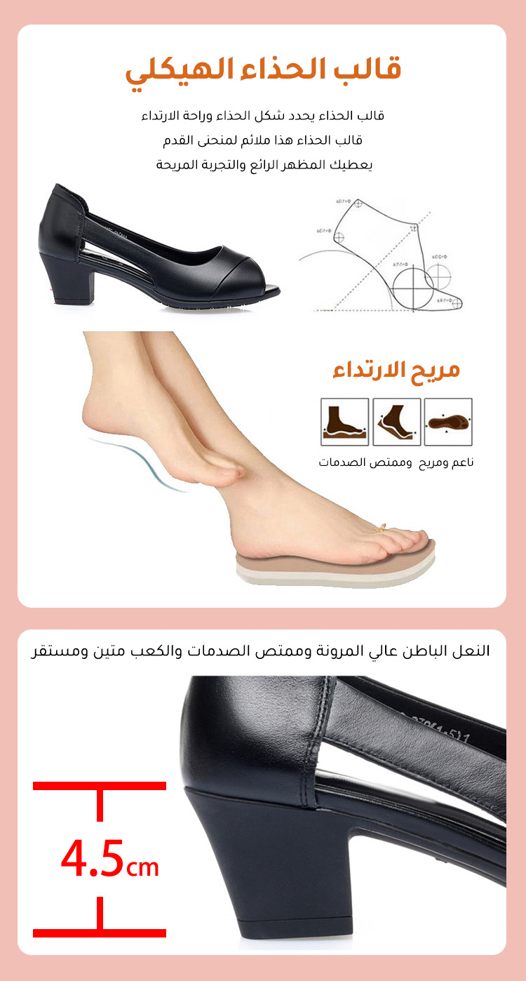 Healthy-foot حذاء نسائي مفتوح من الجلد الطبيعي بكعب متوسط 4.5 سم، تجربة ارتداء ناعمة ومريحة، حذاء مهني للعمل يمكن ارتداؤه لساعات طويلة دون التعب