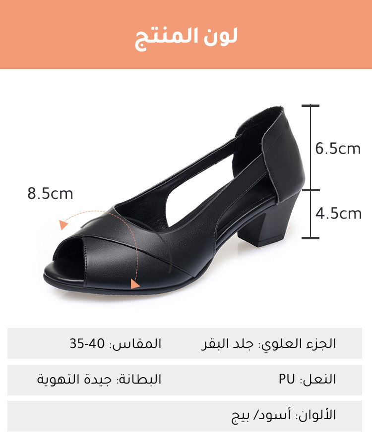 هذا الحذاء بجلد العجل الإيطالي الفاخر، والكعب المستقيم بارتفاع 4.5 سم، والألوان الأبيض والأسود العملية، يجمع بين "الأناقة" و"الراحة" في كل خطوة، مما يحقق لك "الحرية الأنيقة" في ارتدائك الصيفي.