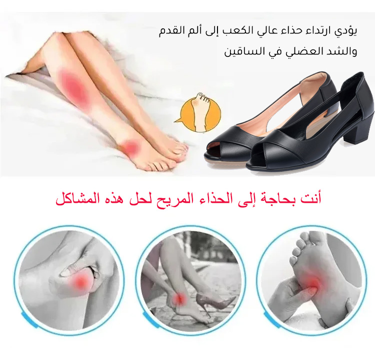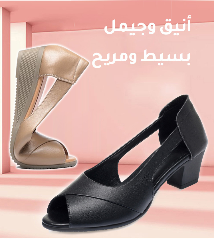 Healthy-foot حذاء جلد بقر طبيعي بكعب 5 سم (مريح جداً للوقوف الطويل والأقدام العريضة) جلد بقر طبيعي فاخر (ناعم ويدوم طويلاً) كعب عريض 5 سم (يمنحك الطول والثبات) نعل داخلي من اللاتكس (يمتص الصدمات ويحمي الظهر)