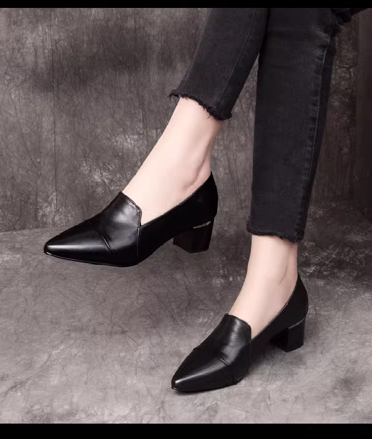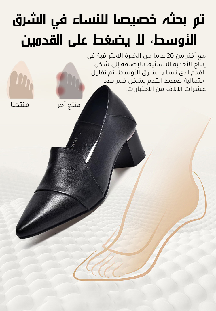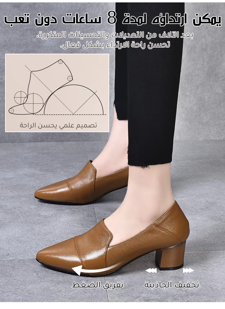 Healthy-foot حذاء نسائي فرنسي بكعب عالٍ من الجلد الناعم، بكعب متوسط ٥ سم، أنيق ومريح، سهل الارتداء والخلع، يُبرز جمال ساقيكِ. مثالي للتنقل أو العمل