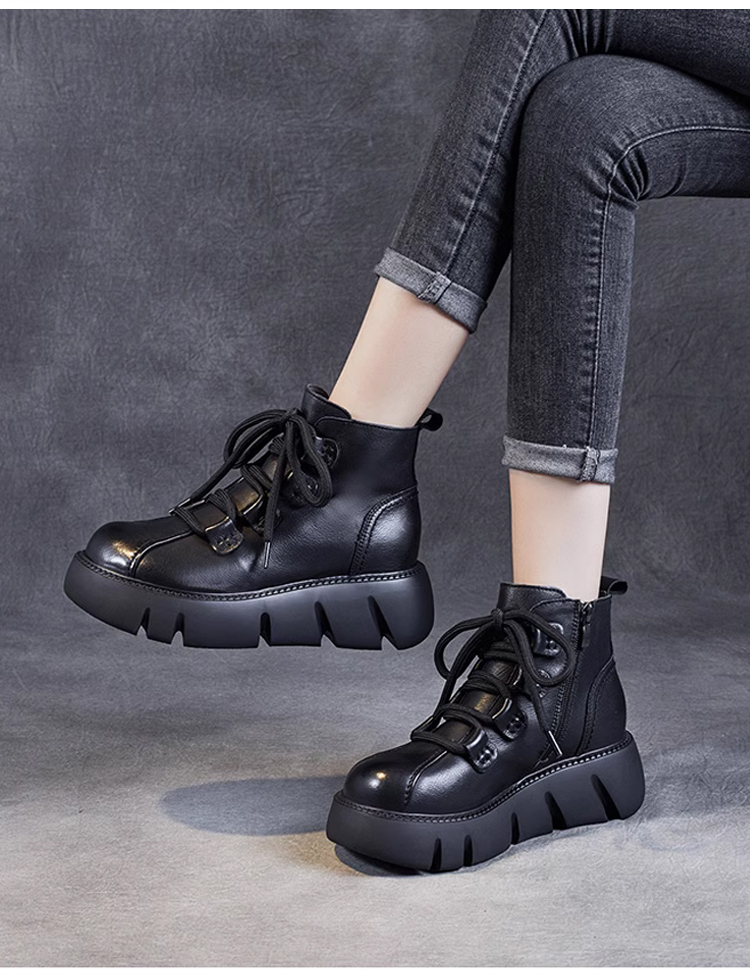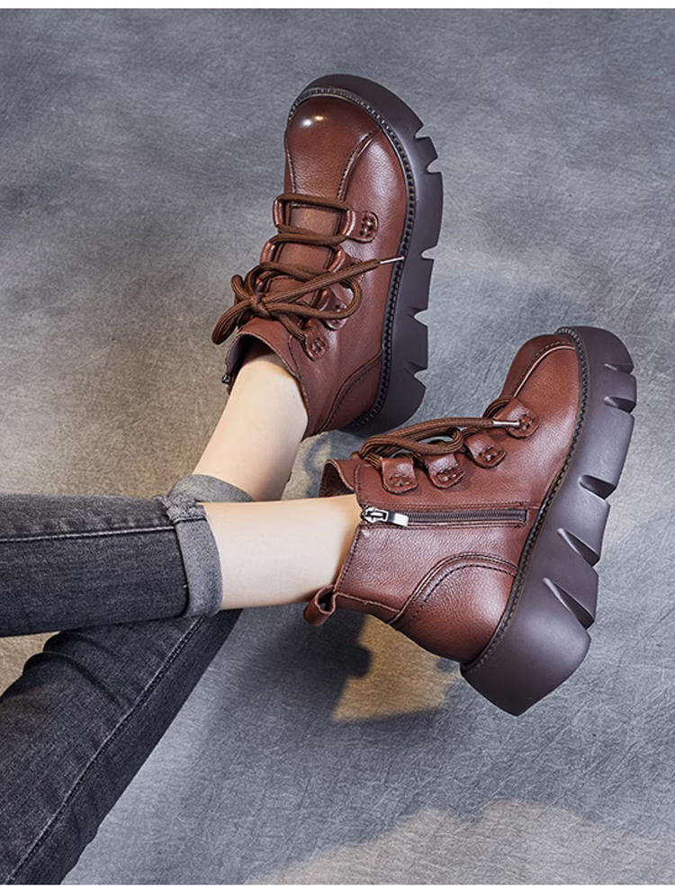 Healthy-foot حذاء مارتن نسائي من الجلد الأصلي، بتصميم سحاب خلفي، غير قابل للانزلاق ومقاوم للماء، أكثر ملاءمة لطقس الخريف والشتاء، ناعم ومريح، نمط متعدد الاستخدامات