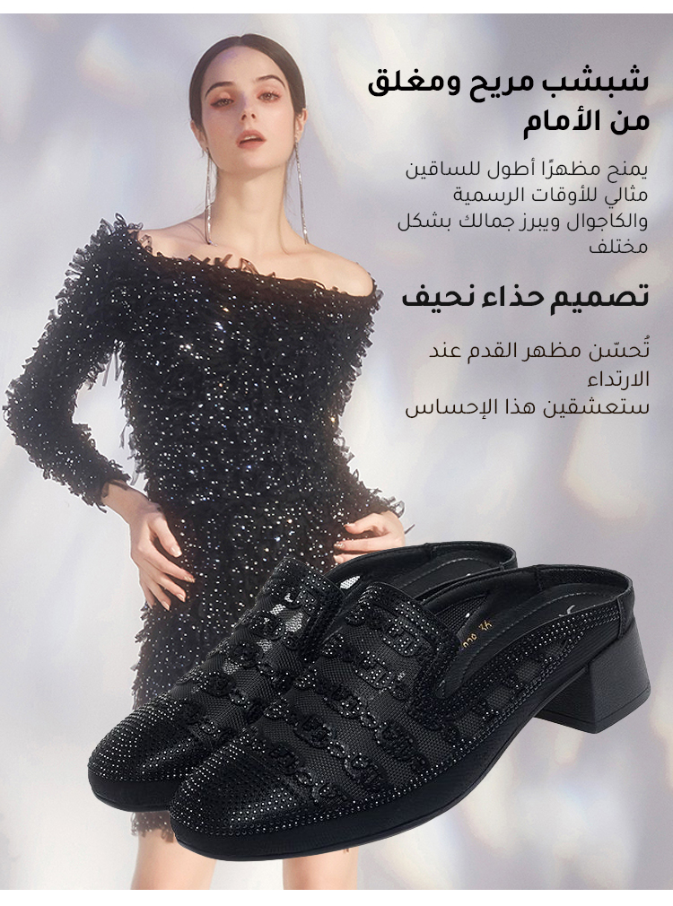 Healthy-foot أحذية نسائية بطراز عرقي مرصعة بأناقة، مثالية للارتداء مع البدلات أو الفساتين السهرة للعمل أو المناسبات، مع توفير ثلاثة خيارات للنعال