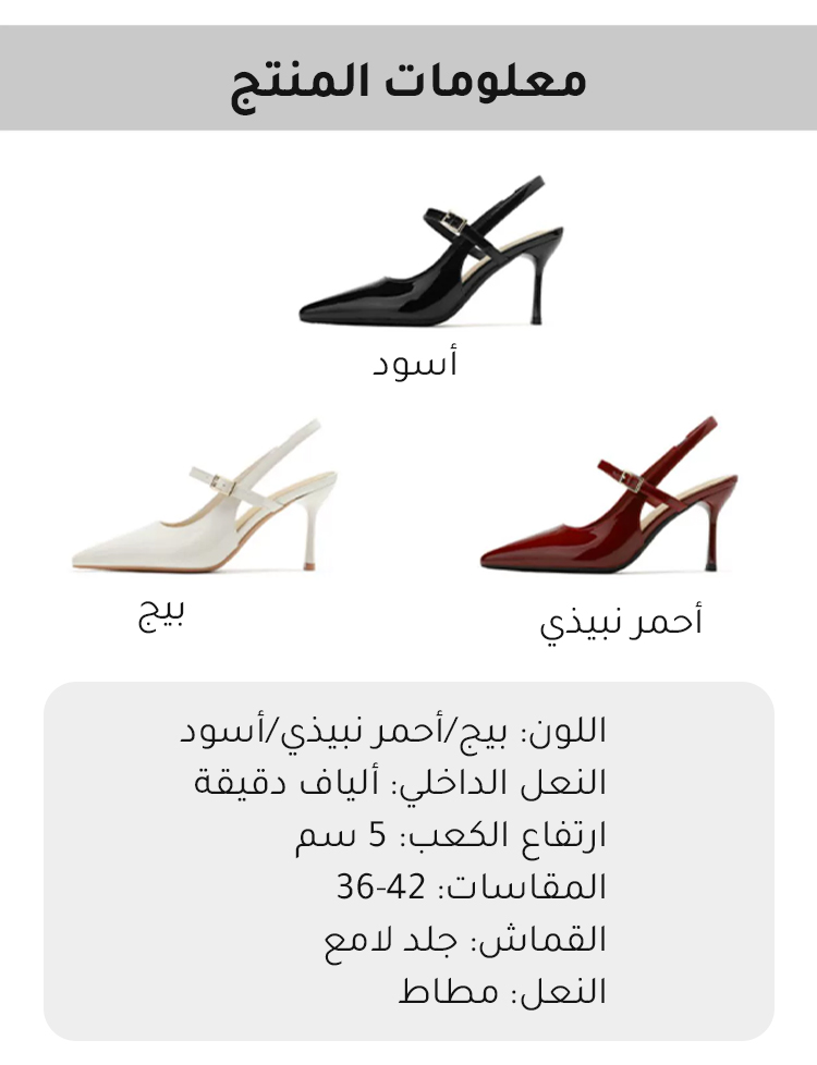 Healthy-foot حذاء نسائي فرنسي بكعب عالٍ من الجلد الناعم، بكعب متوسط ٥ سم، أنيق ومريح، سهل الارتداء والخلع، يُبرز جمال ساقيكِ. مثالي للتنقل أو العمل