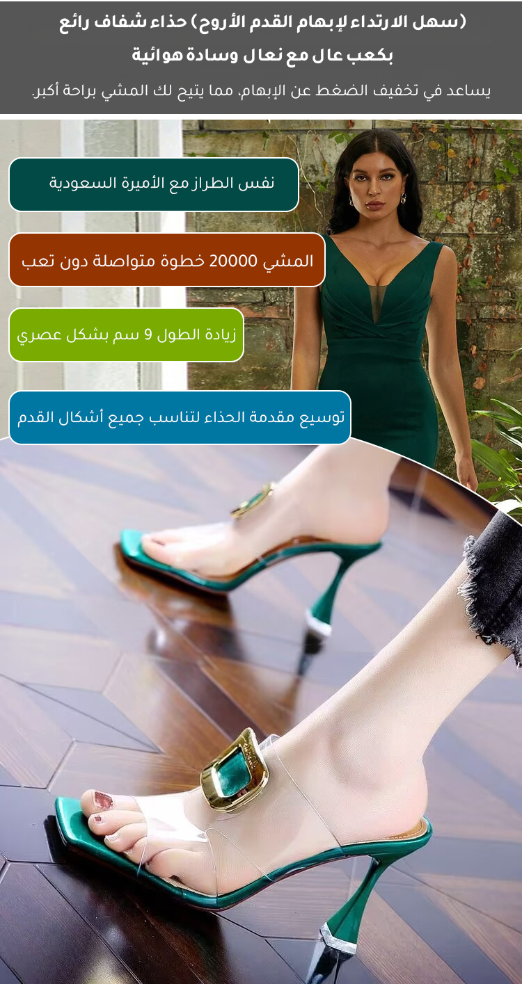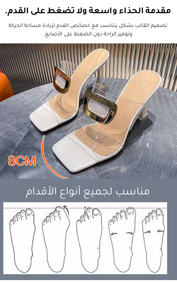Healthy-foot أحذية كعب عالي للسيدات شفافة مفتوحة عند أصابع القدم، بكعب 9 سم، تمنح مظهراً نحيفاً وإطالة لخط الساق، مناسبة لمرضى التواء الإبهام
