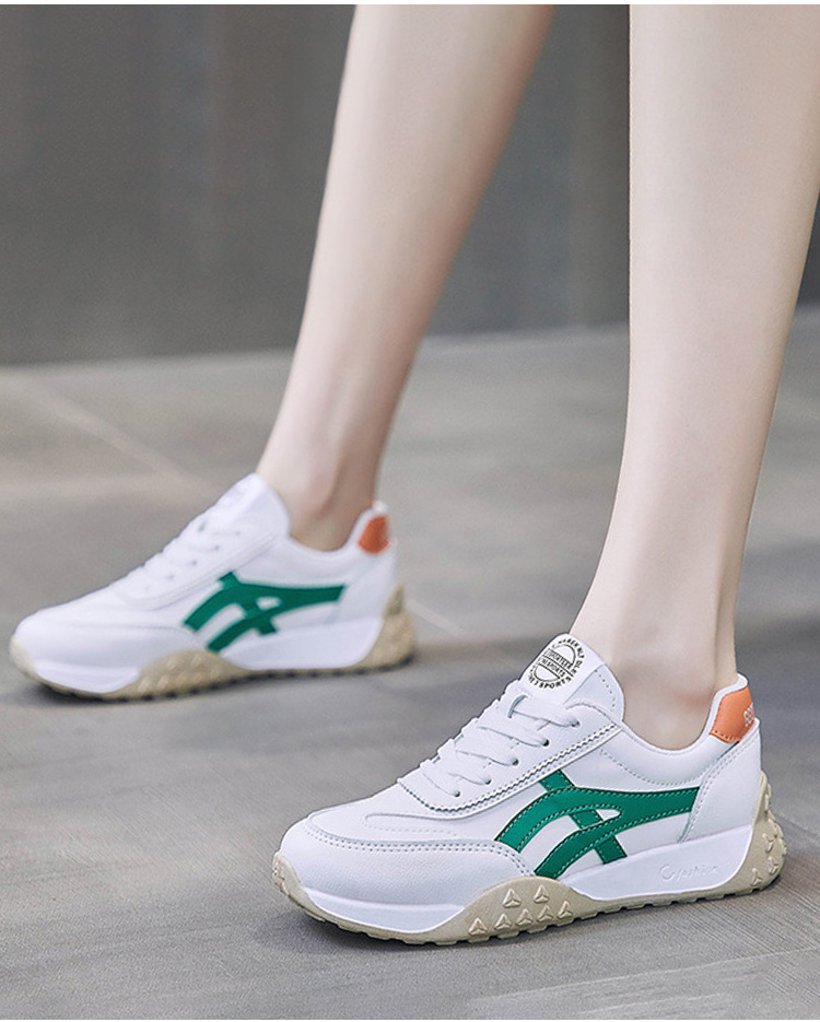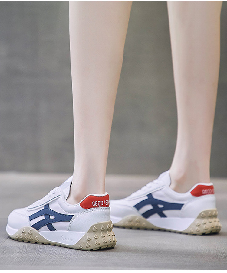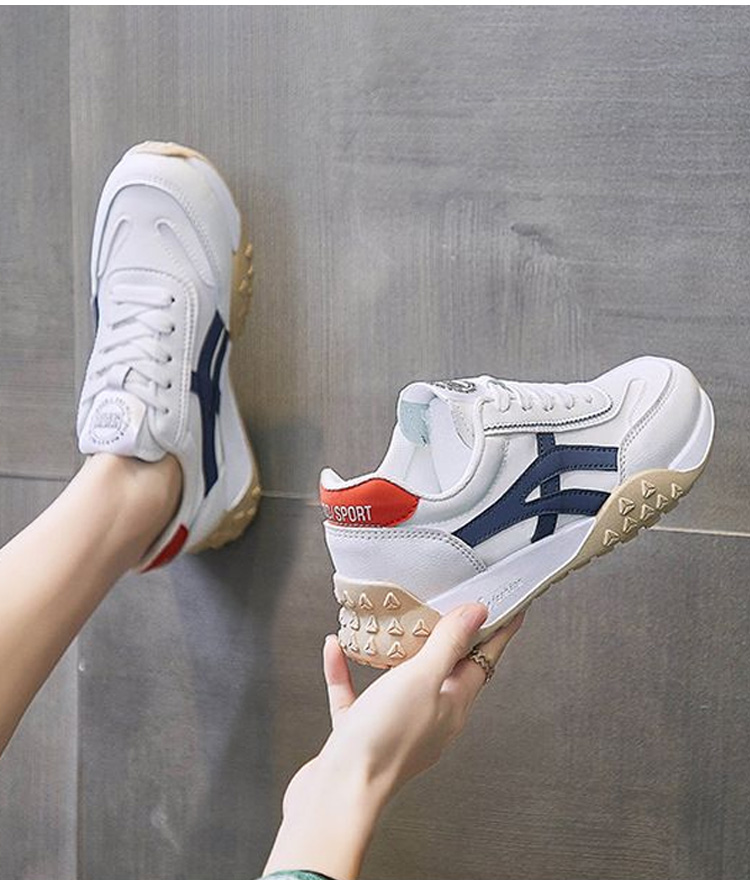 Healthy-foot حذاء رياضي أبيض للسيدات، مصنوع من الجلد الطبيعي، كعب مرتفع بارتفاع 5 سم، تصميم متباين الألوان عصري وعملي للاستخدام اليومي