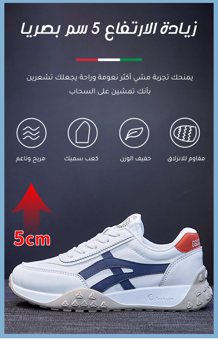 Healthy-foot حذاء كاجوال من الجلد الناعم مع شريط مطاطي مناسب لقصار القامة