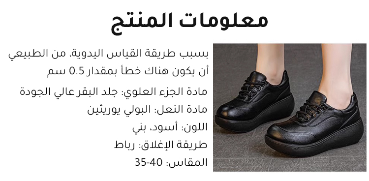 Healthy-foot حذاء أمهات جلدي سميك برباط، مصنوع من قماش جلدي ناعم تصميم نعل سميك بكعب منحدر يزيد الطول ويجعلك تبدو رشيقة ومريحة بثبات