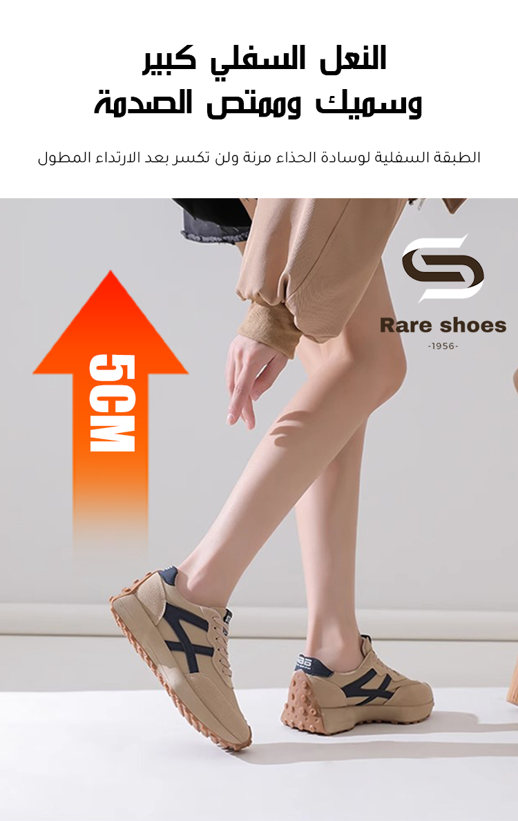 Healthy-foot حذاء رياضي نسائي بكعب ٥ سم، يُطيل الساقين بشكل خفيف، فيبدو أنحف وأطول. متعدد الاستخدامات ومريح، مناسب للرياضات الخارجية أو للارتداء اليومي