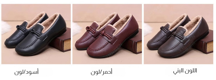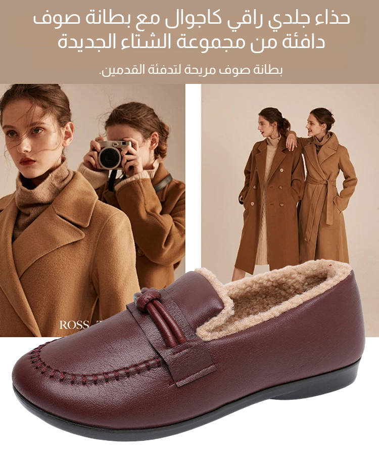 حذاء جلدي راقي كاجوال مع بطانة صوف دافئة من مجموعة الشتاء الجديدة للنساء