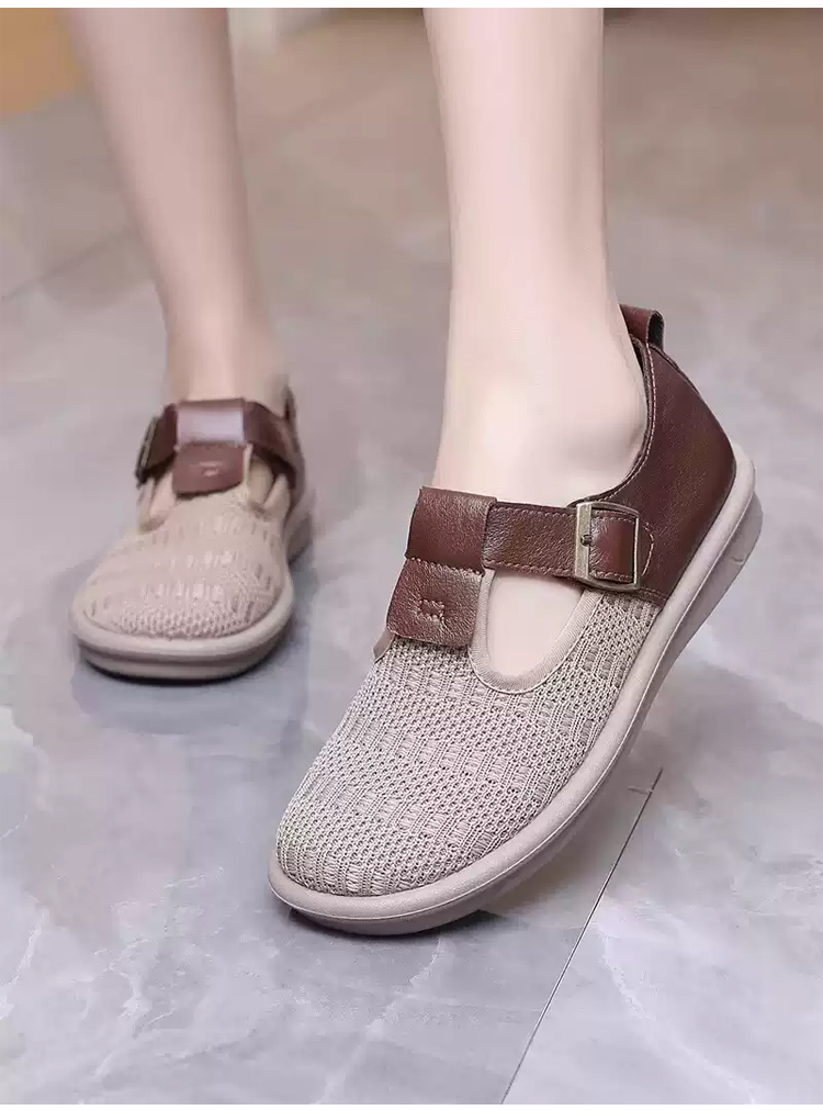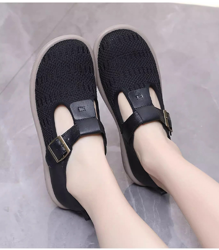 Healthy-foot حذاء محبوك مريح للسيدات بتصميم عريض مع إبزيم معدني مربع، ناعم وقابل للتنفس، مناسب للخروج أو للارتداء اليومي