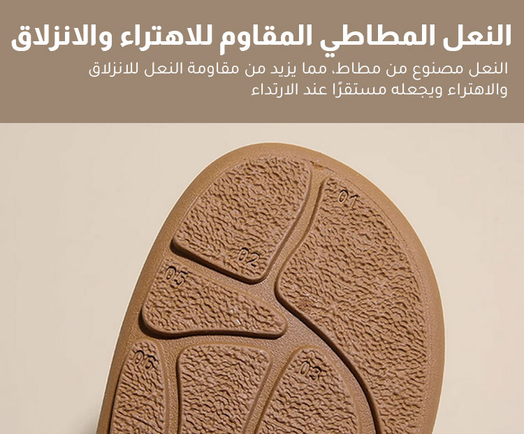 ● يمنحك الحذاء دعماً جيداً للقدمين بفضل النعل المرن والمريح، ليكون خياراً مثالياً للاستخدام اليومي داخل المنزل وخارجه.