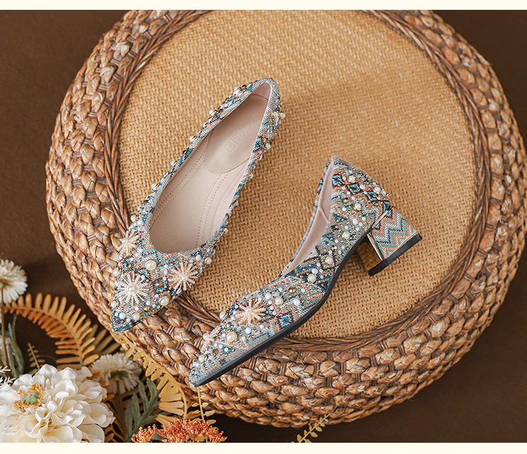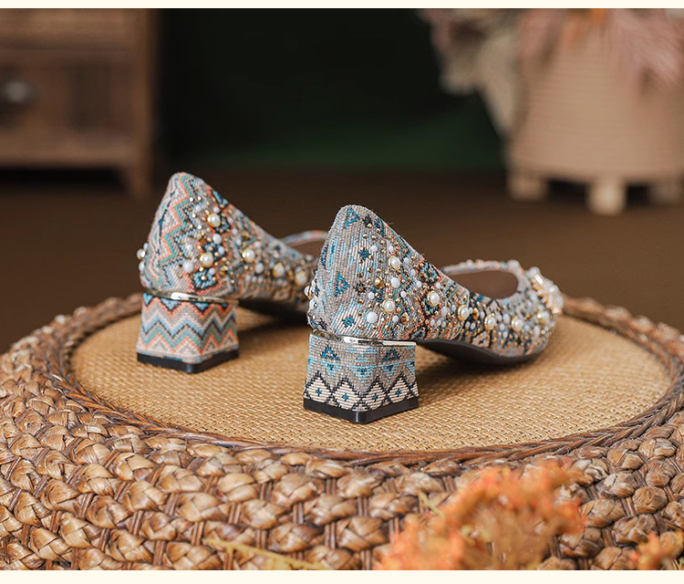 Healthy-foot أحذية نسائية بطراز عرقي مرصعة بأناقة، مثالية للارتداء مع البدلات أو الفساتين السهرة للعمل أو المناسبات، مع توفير ثلاثة خيارات للنعال