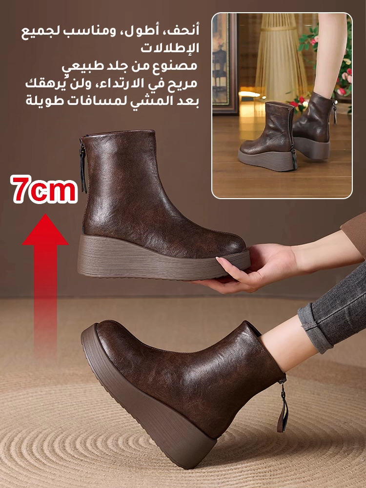 Healthy-foot حذاء معتق راقي جلدي بنعل سميك للنساء